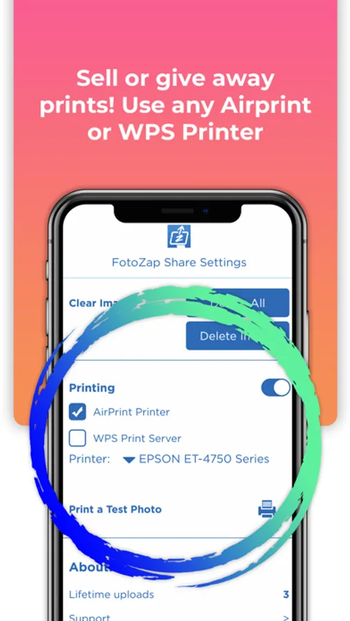 Sharing options are set up in the online administrative website. This software is used in conjunction with either direct guest uploads or when FotoZap App is used to capture photos.