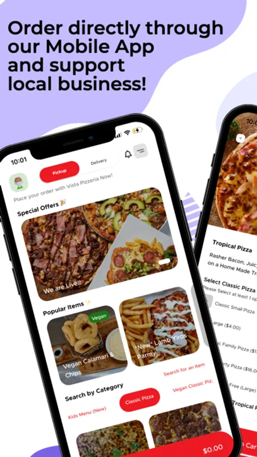Download The Vista Pizzeria App today to gain access to our full menu, order through the app, receive exclusive in-app discounts and gain reward points for each order to use on future purchases!