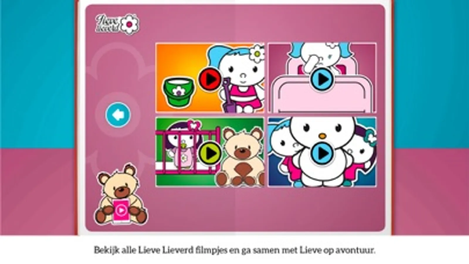 vol spelletjes, filmpjes en magische kleurplaten. Deze gratis app laat kleurplaten tot leven komen, toont de filmpjes van Lieve Lieverd en zit vol met spelletjes zoals tikkertje, dierengeluiden raden, memory, zoek de verschillen en nog veel meer. Daarnaast kan je muziek maken of lekker kleuren.