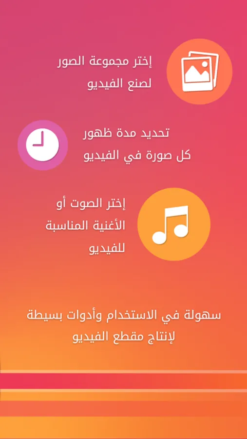 من خلال تطبيق صانع الفيديو يمكنك انشاء مقاطع الفيديو البسيطة والجميلة من مجموعة صور ودمجها مع الصوت الذي تريده والحصول على مقطع مميز لنشره ومشاركته بين اصدقائك على مختلف شبكات التواصل