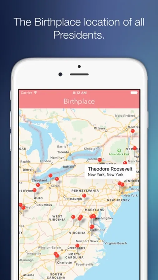 The is also another tab called "Birthplace" that lets you see where the Presidents are born that is indicated with a map pin.
