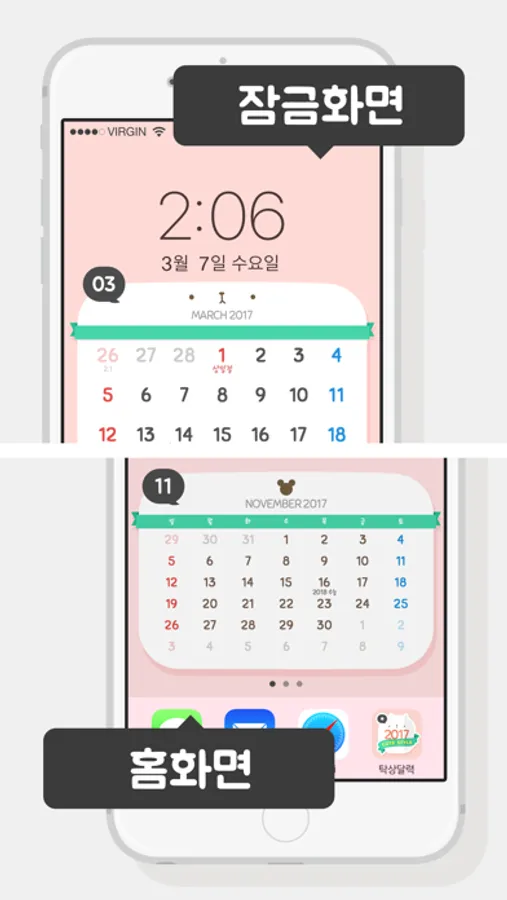 -잠금화면, 홈화면 배경화면으로 달력 저장