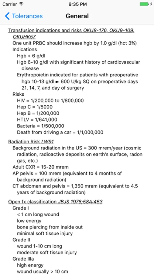 The information provided in this app is intended to be used by experienced orthopedic residents and surgeons. This mobile app provides the most recent tolerances and indications for common orthopaedic injuries.