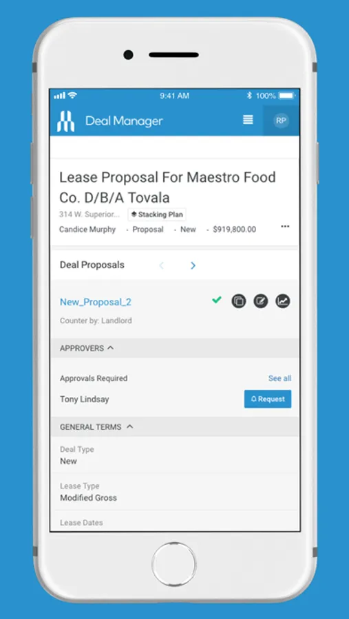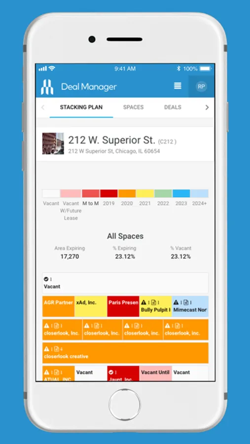 A flexible messaging and approval workflow system allows brokers and asset managers to centralize conversations and tasks at the deal or property level. With a direct connection to your Voyager system, Deal Manager provides up-to-date availability information and stacking plans for your leasing team, while also sending deal data directly into Voyager.