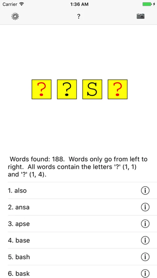 Crossword puzzle help by a single row grid with question marks for unknown letters.