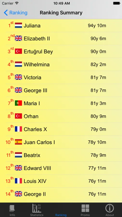 * See ranking and record within a certain country or across all monarchies