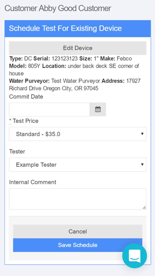 -Allow customers to schedule their backflow tests, contact you, view test history and reports, and pay their bills directly to you from our personalized customer portal.