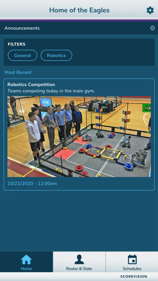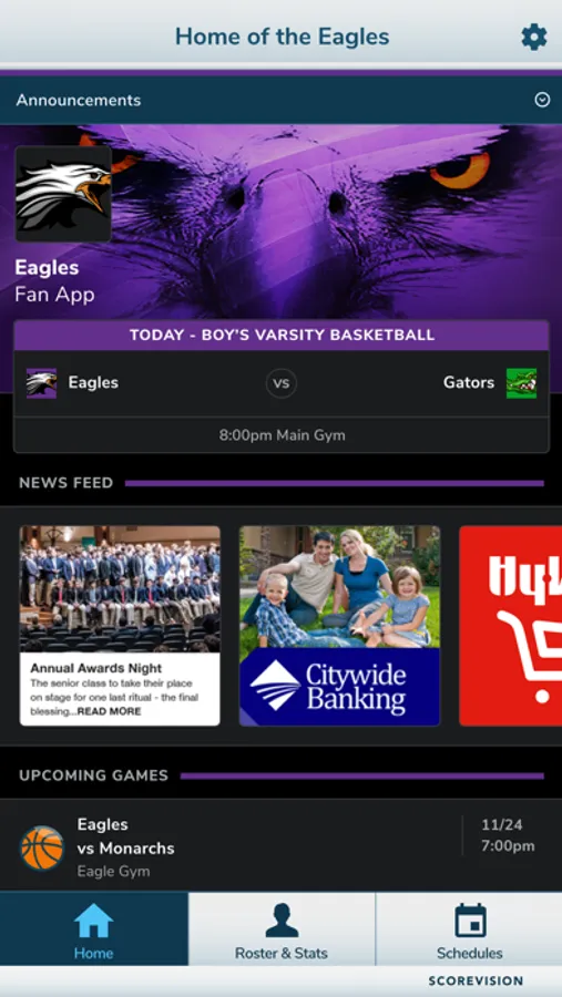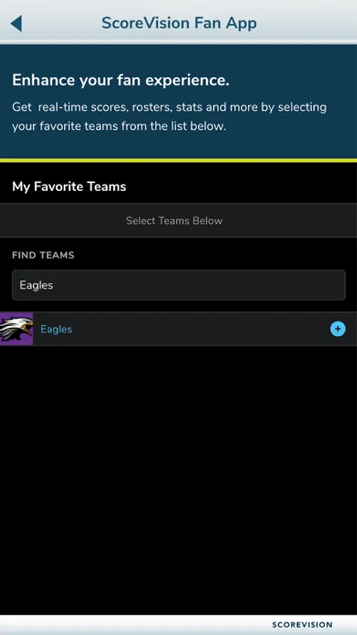 Download the ScoreVision Fan App to get real-time score updates, video highlights, live streams, and more. Simply choose your favorite team that's using ScoreVision software, then check scores, watch highlights and streams, and see rosters, stats, announcements and more with our free Fan App.