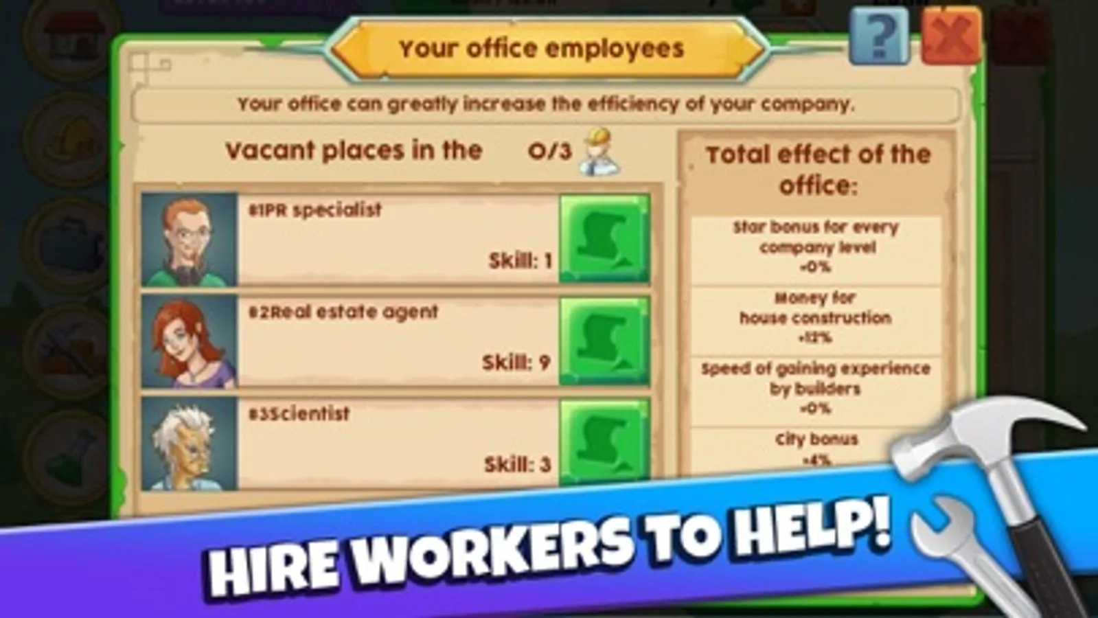 As the civil construction planner and head engineer, you can build as many houses, offices, and mansions as you like. As you create a bigger city, you can even build a castle!