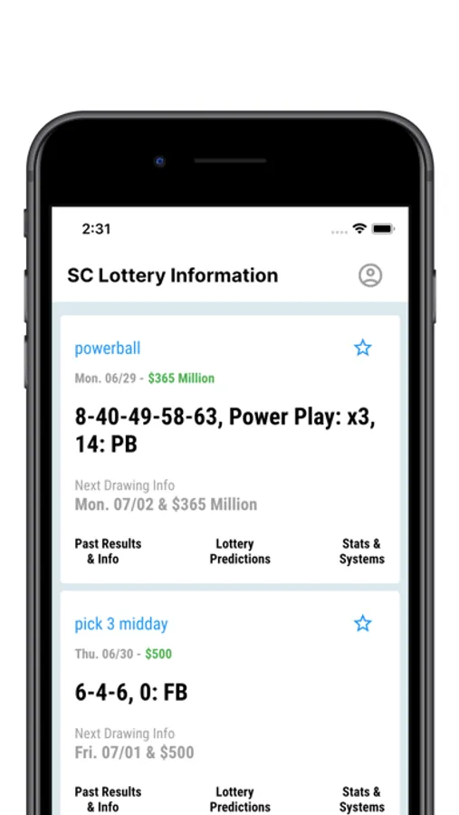 Get the winning numbers for the SC Lottery. Results for each lottery game are updated every 5 minutes! You can save your favorite numbers, receive push notifications, or search past results!