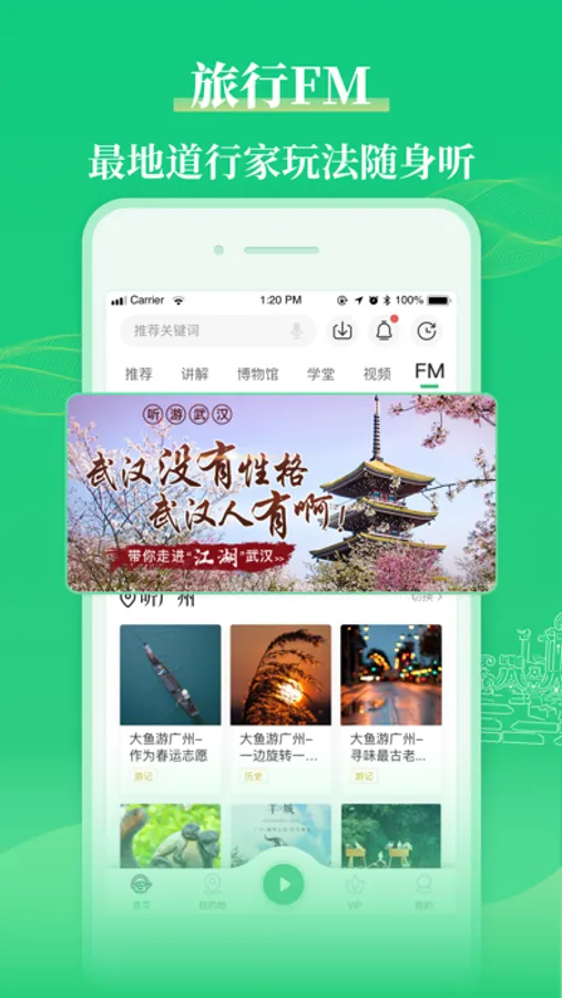 旅游FM电台:可以听的旅行攻略,目的地历史人文、风俗礼仪、禁忌、美食购物、玩法攻略全覆盖,让您足不出户听游世界。