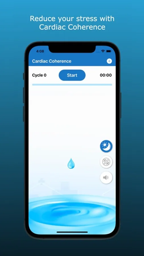 Just breathe in when the water drop is going up and breathe out when it goes down. A vibration allows you to follow the pace with your eyes shut.