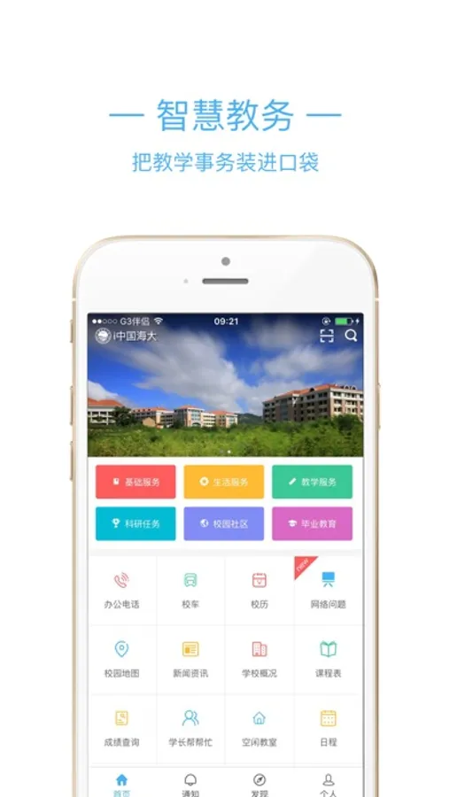 中国海洋大学移动APP充分利用学校数据中心的资源优势,结合校内各门户网站、管理系统、教学科研协作应用平台内容,打破信息壁垒、实现数据共享、便捷师生查询、助力教学科研,为海大师生提供一站式的智慧校园移动服务。