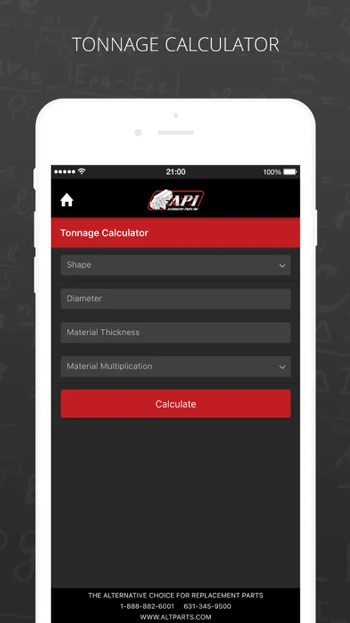• Tonnage Calculator: Calculate the amount of tonnage needed to punch a hole in different types of metal based on material type, and thickness.