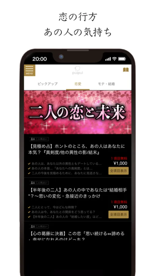 ご購入された有料メニューは、HOME画面右上の本マーク「購入履歴」から何度でも閲覧いただけます。