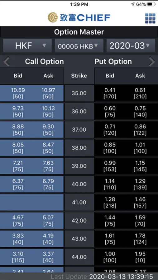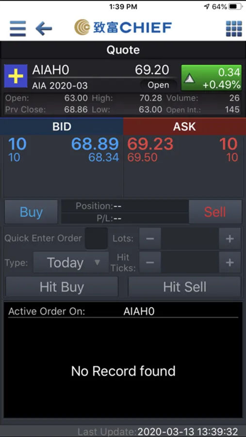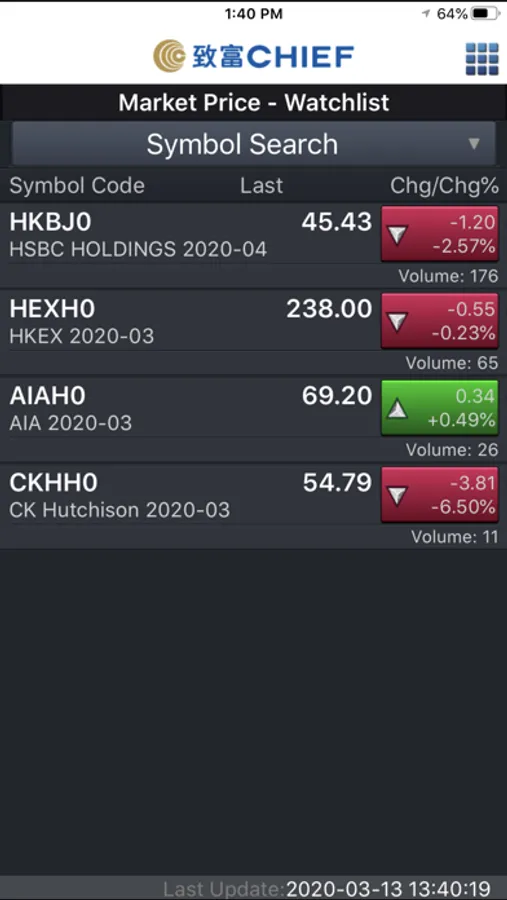 CHIEF SPEED mobile app is a professional trading platform for Global Futures / Options and Hong Kong Stock Options investors. It provides real-time market data of Hong Kong Stock Options and Global Futures (currency, index, metal, energy, agriculture products etc). It assists investors in placing order, checking account balance and positions.
