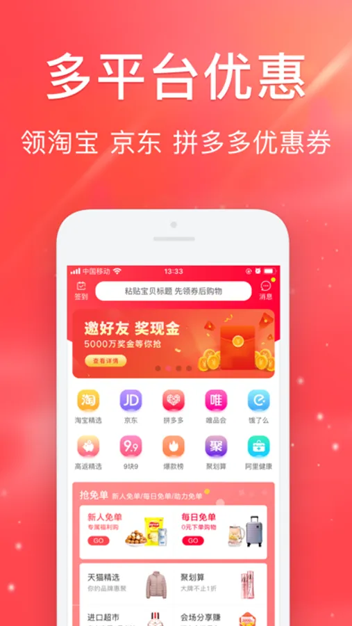 免单猫整合全网知名电商优质商品,一站式整合海量隐藏优惠券,先领券再下单,每笔均有返利,千万人都在用的网购省钱利器