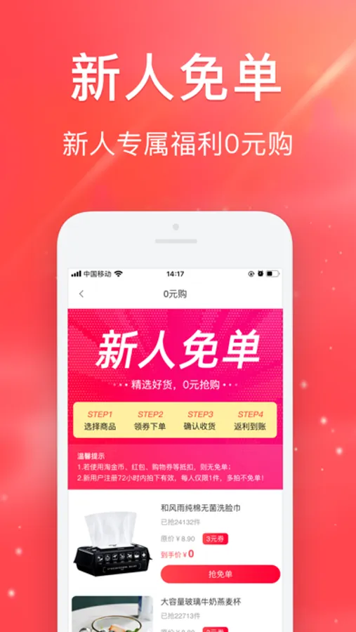 每周一到周五上午10点抢免单,领淘礼金红包,真正0元下单