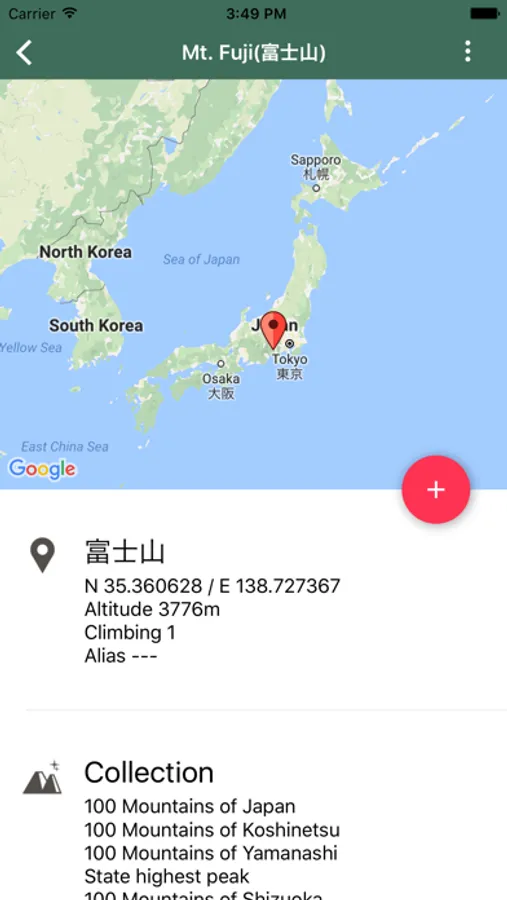 Enjoy your trek records and complete various 100 mountains of Japan!