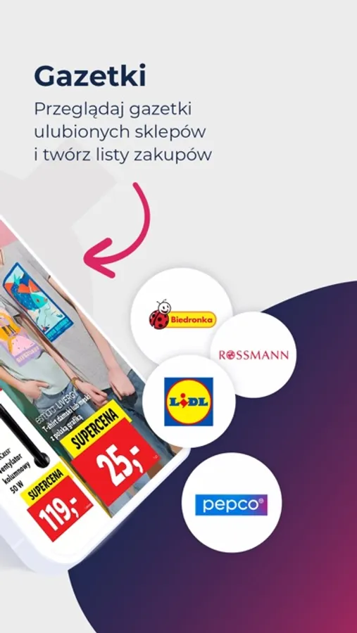 • możesz przeglądać gazetki promocyjne ulubionych sieci handlowych np. Biedronka, Lidl, Carrefour, Auchan i wiele innych,
