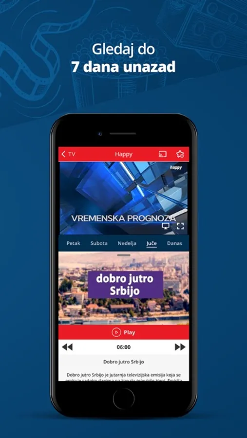 • gledaj već emitovan sadržaj i do 7 dana unazad