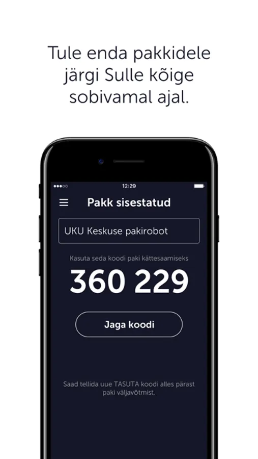 3. Kasuta paki sisestamiseks koodi ise või jaga sõbra/kulleriga.