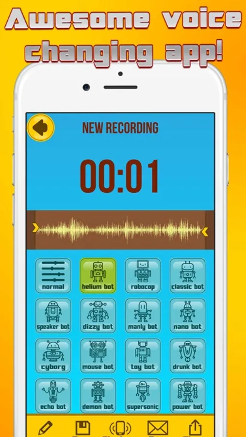 Change your voice with Robot Voice Changer Effects app completely free of charge! Sound like a robot and select from a variety of sound filters that we have provided within this cool voice changing app. Morph your speech into a machine-like voice with some of the robotic filter tools that we have prepared. Hurry up and get it to make perfect audio pranks!