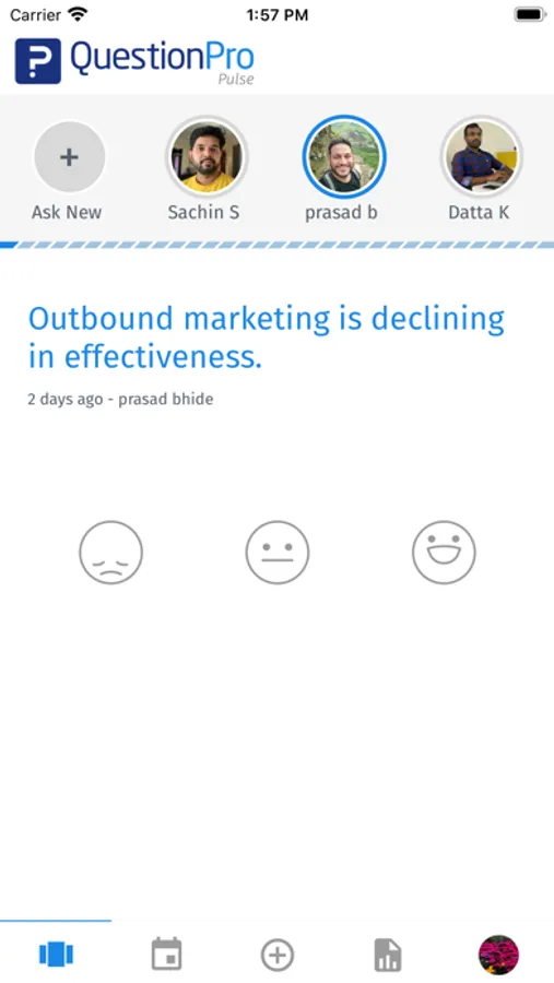 The QuestionPro Pulse app connects with your QuestionPro account and allows you to collect responses of your employees and monitor the response in real time. This application allows employee to give their feedback and also provides an overview of the total number of responses that has been collected which is displayed in graphical format. This version of QuestionPro Pulse app is supported on IOS 8.0 and above.