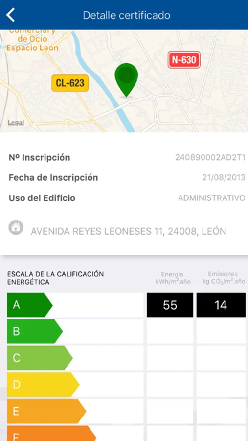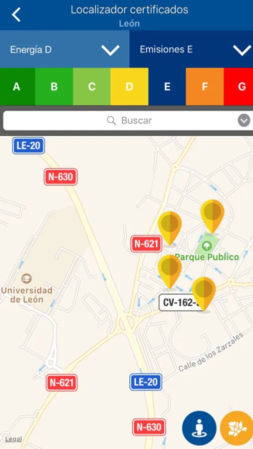 - Visualización geolocalizada de los certificados energéticos de los edificios de Castilla y León, con la calificación energética inscrita en registro CEREN.