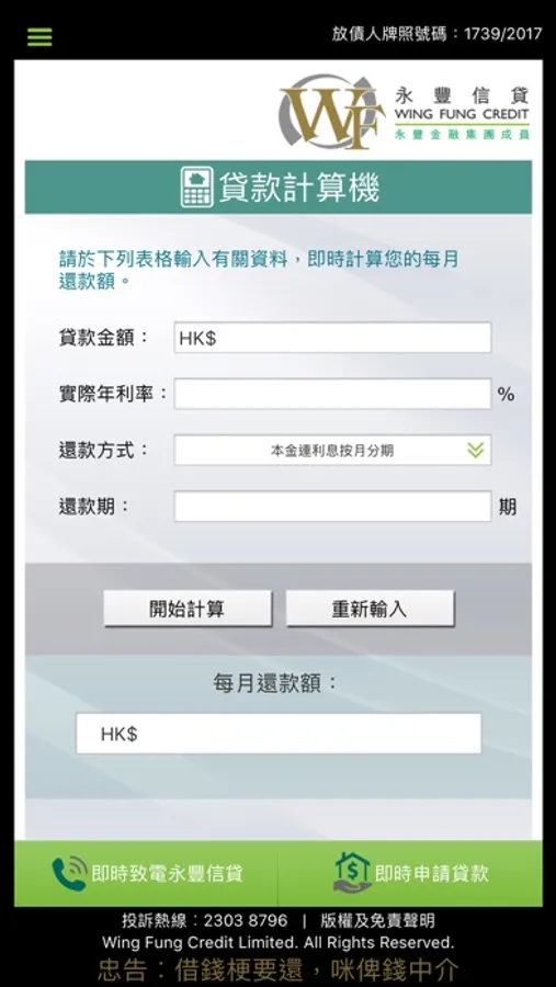 ● 貸款計算機 - 輸入貸款金額、還款期及實際年利率,即可計算出每月還款金額。
