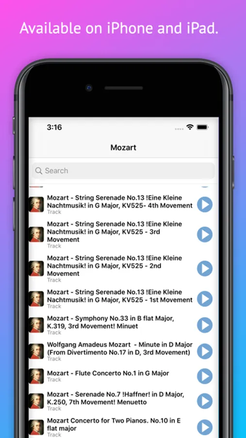 Enjoy Mozart's music anytime. Available on iPhone/iPad.