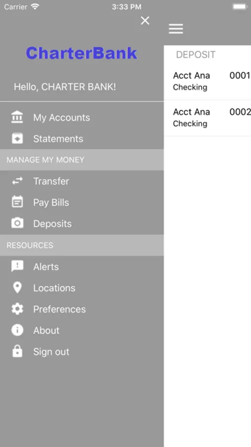 Charter Bank Mobile Banking supports all account types, including Checking, Savings, Money Market, Certificate of Deposits, and Loans.