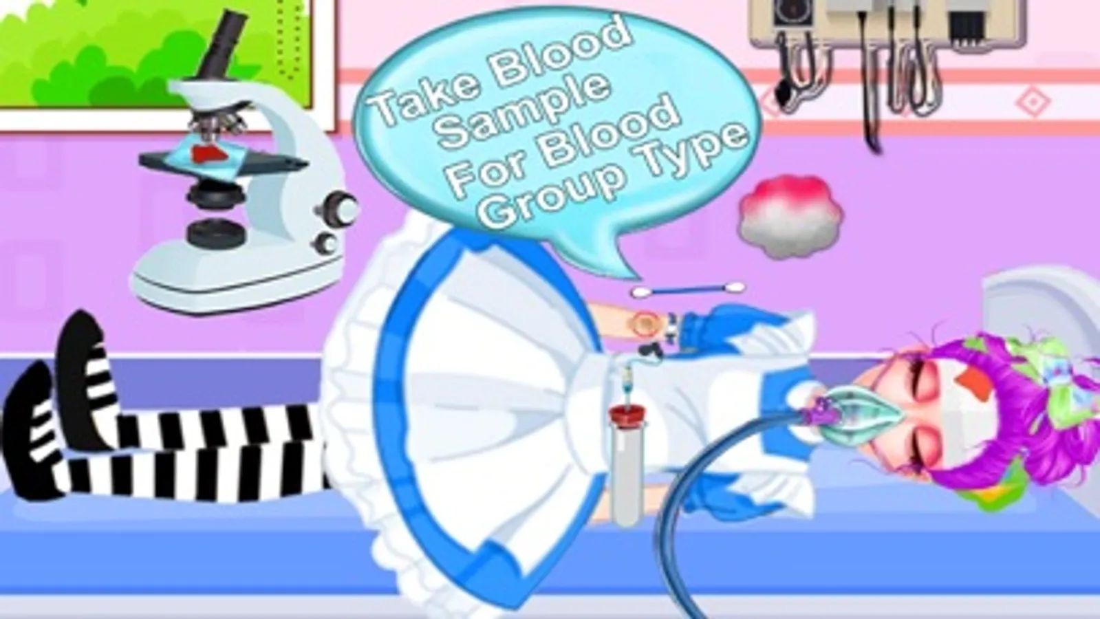 *** Flu, and cold cough treatment using thermometer, stethoscope, injection, oxygen pump and syrup.