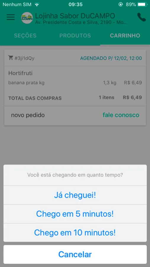 - Toque no botão de comunicar chegada para avisar em quanto tempo chega e receber seu pedido sem precisar descer do carro!