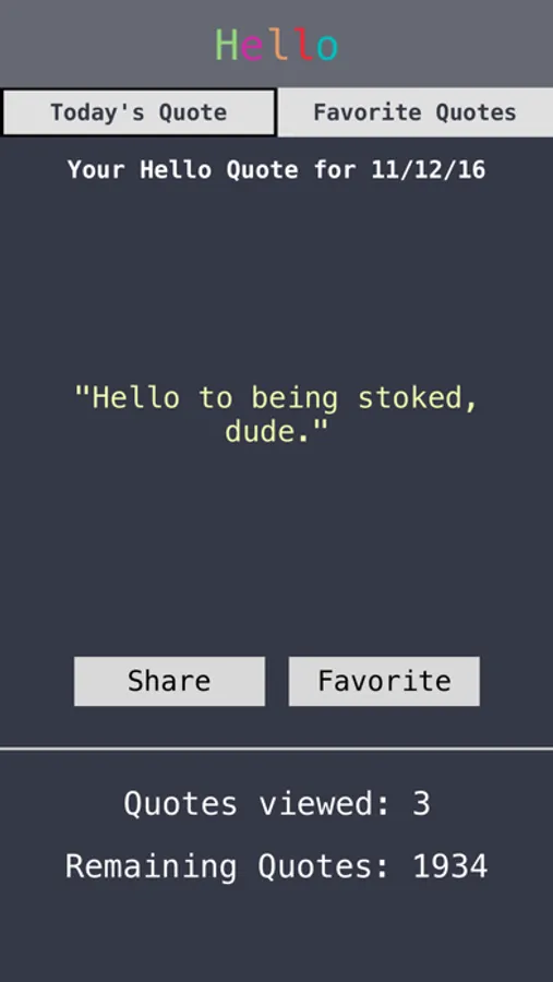 The Hello app has almost 2000 quotes and you will be shown a different one every day. You can also favorite a quote so you can see it and share it later.