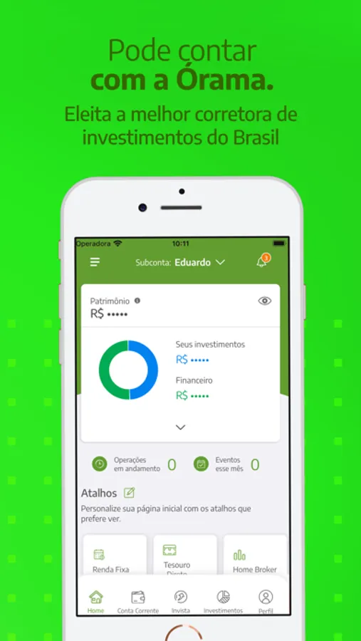 Quer investir com segurança e sem pagar taxas abusivas? Então você precisa conhecer a Órama, uma plataforma de investimentos 100% online e sem custos. Nela, você encontra diversas funcionalidades pra investir com segurança e praticidade.