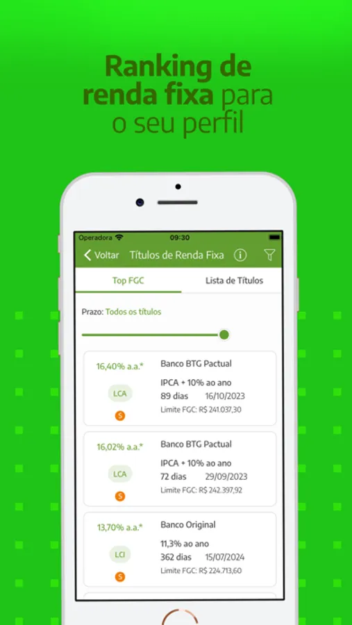 - Acesso a todos os seus investimentos