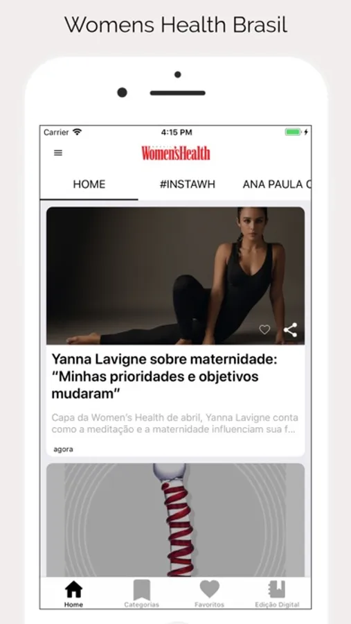 Women's Health digital traz o melhor conteúdo sobre a saúde da mulher. Por aqui você garante incríveis dicas de nutrição, descobre o que tem de mais novo no mundo fitness, além de receber conselhos práticos de moda, beleza e carreira. Isso sem falar nas pitadas quentes de sexo para apimentar seu relacionamento. Nossas garotas da capa são sempre sinônimo de vida saudável e entregam suas rotinas de treino e alimentação de bandeja. Nosso app ainda conta com making of, fotos e vídeos exclusivos. WH mobile é você, só que melhor.