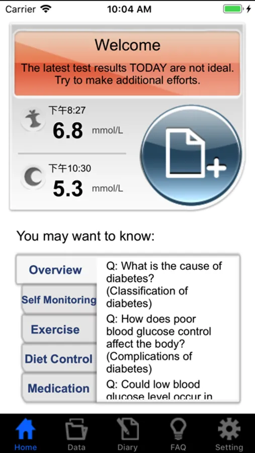 This user-friendly app for comprehensive diabetes management records and converts your blood glucose test results into graphs and charts for easy analysis. The application enables organised self-monitoring of blood glucose data for you and your healthcare provider. It can be used as a tracker of daily diet, exercise and medication as part of your diabetes management plan.