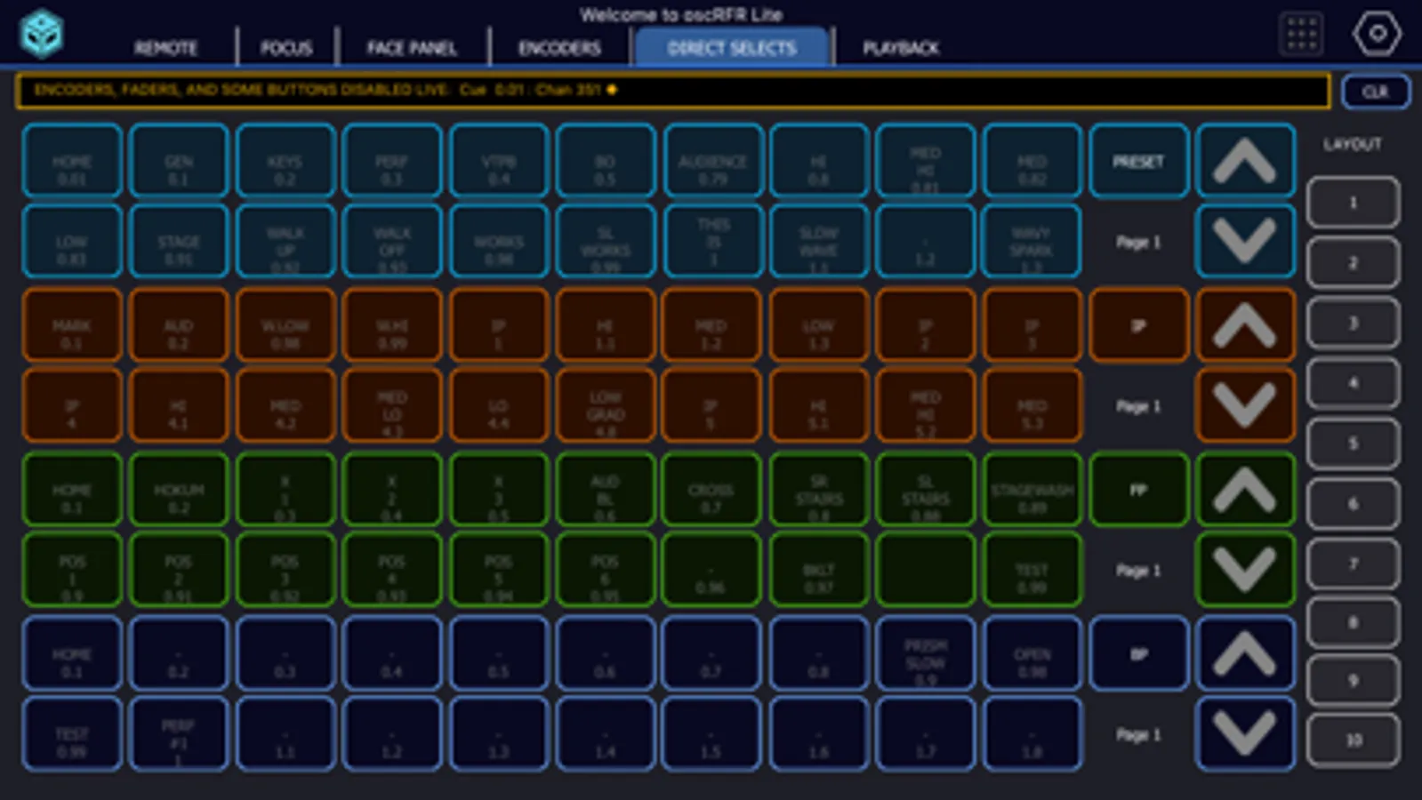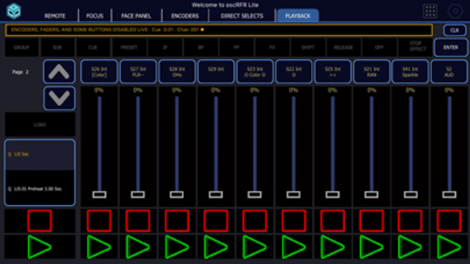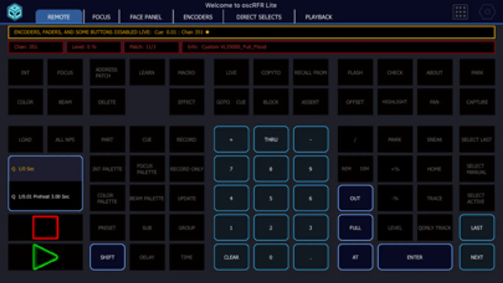oscRFRlite is the INTRO version to the total remote interface for Electronic Theatre Controls (ETC) EOS Family of Consoles.