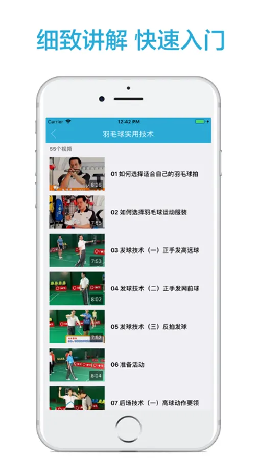 握拍、步法、发球、扣杀、吊球技术、高远球技术、双打技术等基础教学视频,还集合了国内著名练专家的经典教学视频,帮你从零开始学打羽毛球!