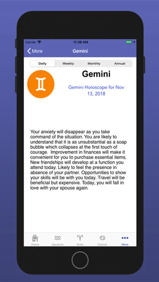 Daily Horoscope - Multiples Idiomas is a free application that gives you the facility to consult your horoscope of the day quickly and easily on your device. Daily horoscope is totally free and frequently updated of Aries, Taurus, Gemini, Cancer, Leo, Virgo, Libra, Scorpio, Sagittarius, Capricorn, Aquarius and Pisces.
