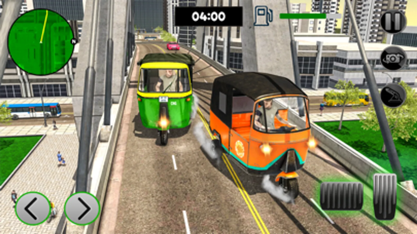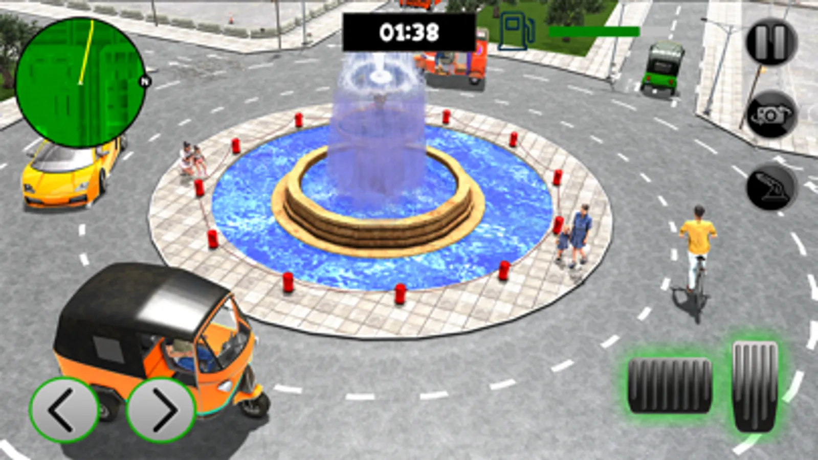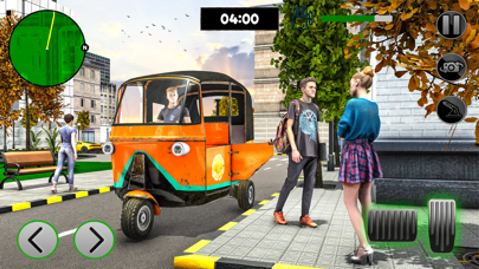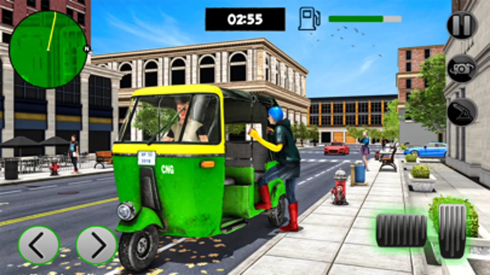 The game provides two driving modes. You can practice your rickshaw riding skills in free mode before moving on to career mode to face a variety of challenges. Take on multiple challenges, successfully complete them, and become a pro driver. Complete each mission and earn coins. Spend coins to upgrade your tuk tuk rickshaw. Follow the map guide to reach the destination. Be careful with your fuel, refill it on time, and provide a safe ride for your tourist.