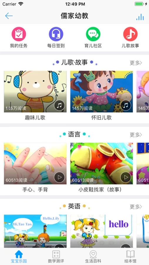 儒家幼教是一款专为中国幼儿园学生和家长设计的成长辅导类app,这里有可玩会讲故事的绘本,这里有数学为主题的辅导游戏,这里还有晚安睡前故事呢!