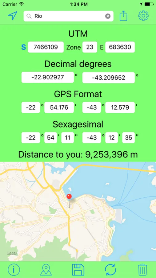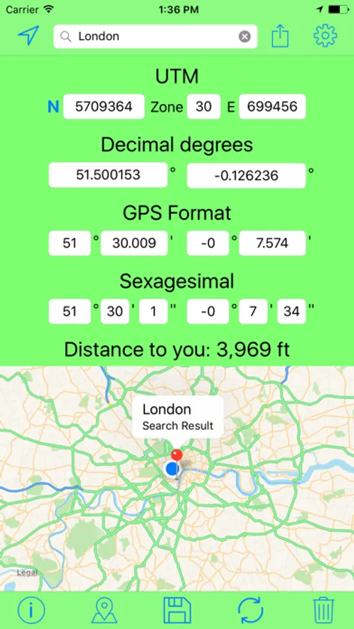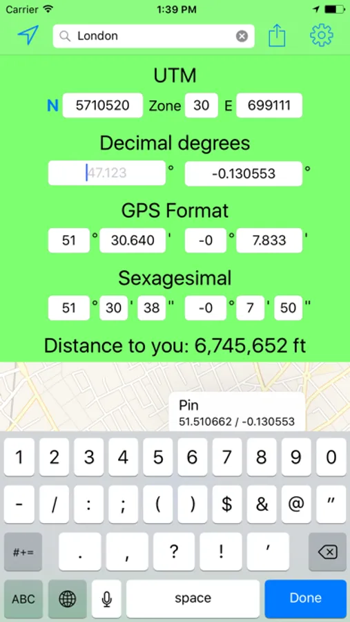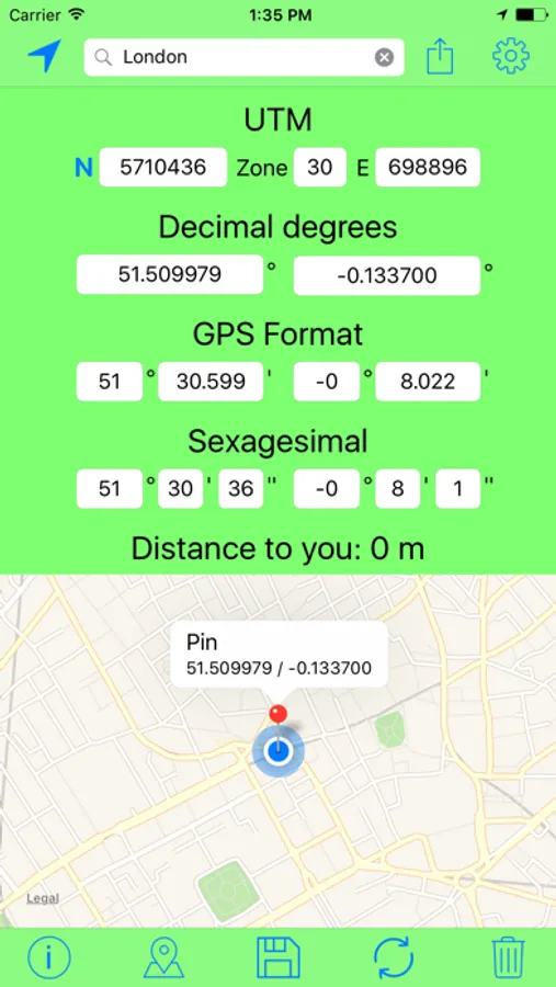 - You can see the distance between you and the coordinates or between you and the pin.