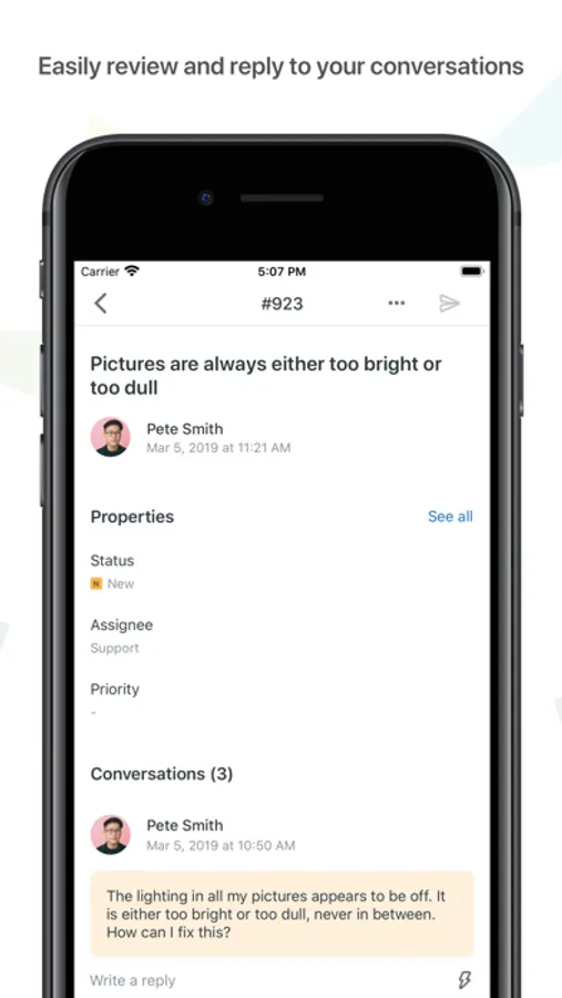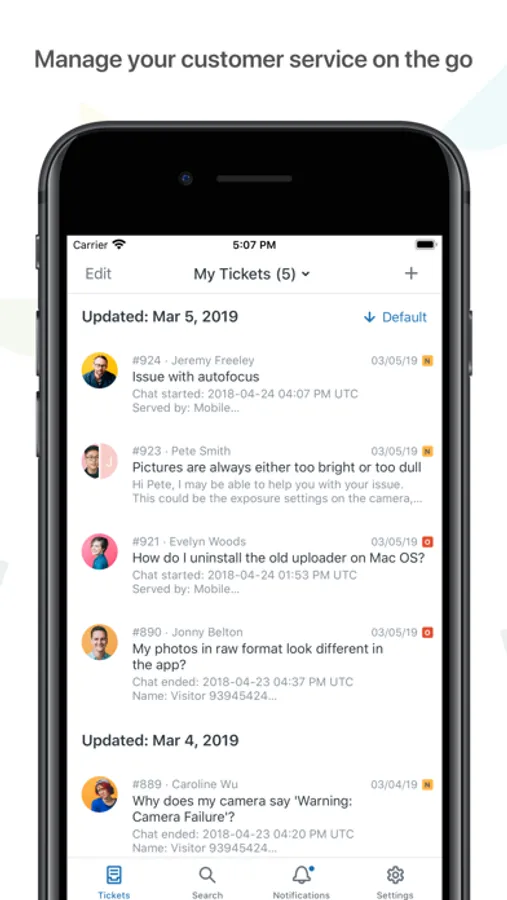 Add the right people to the conversation with @mentions, create new tickets and update assignee, CC, plus add Followers, tags, and any other fields while on the move.