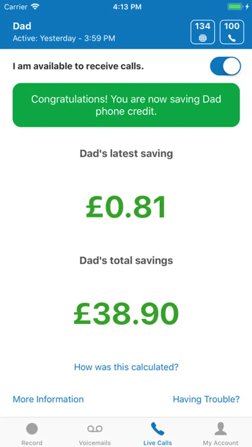 Live calls enable calls to your app from a Prisoner, saving them phone credit.