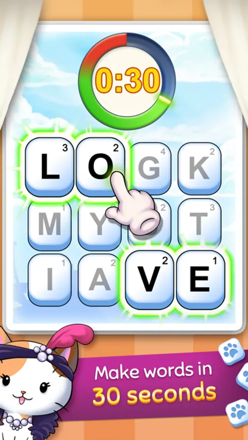 Meow! Make as many words as you can in 30 seconds. Earn cat coins to complete your collection of cats and share your favourite words with your loved ones.
