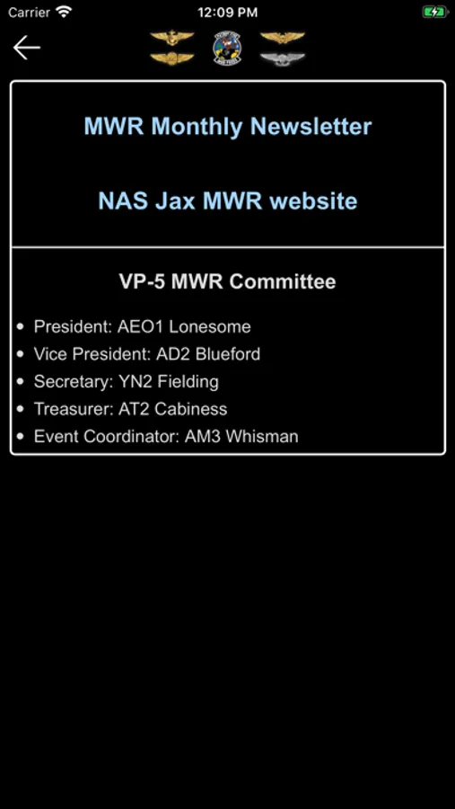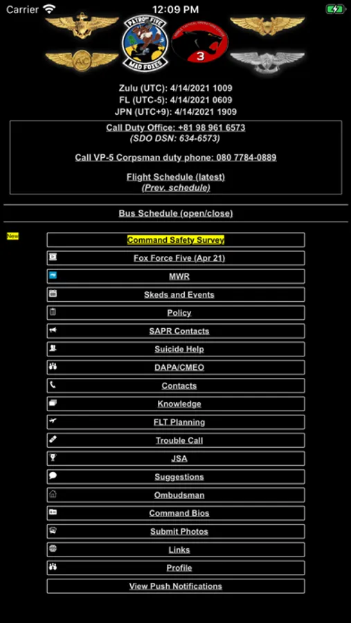 Patrol Squadron Five application. This application is for the official transmission of vp-5 information for the use by the squadron.
