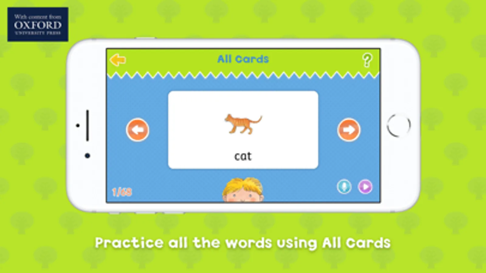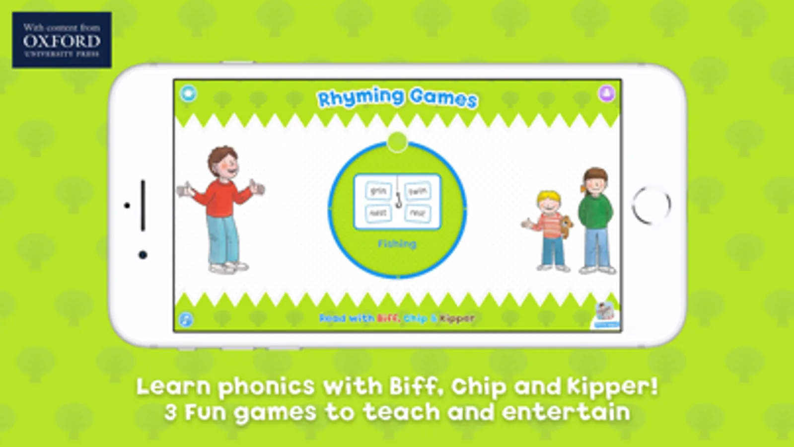 Rhyming Games brings Oxford University Press’ Biff, Chip and Kipper to fun word games and flashcards designed to help children learn. It is an enjoyable way for children to practise reading high frequency words and rhyming through playing games.